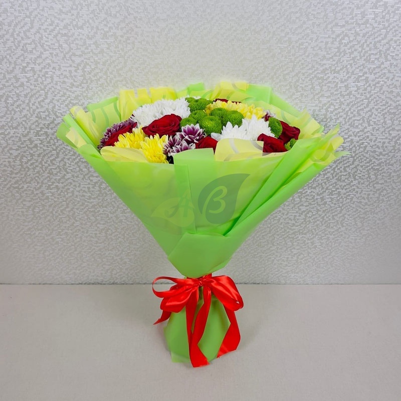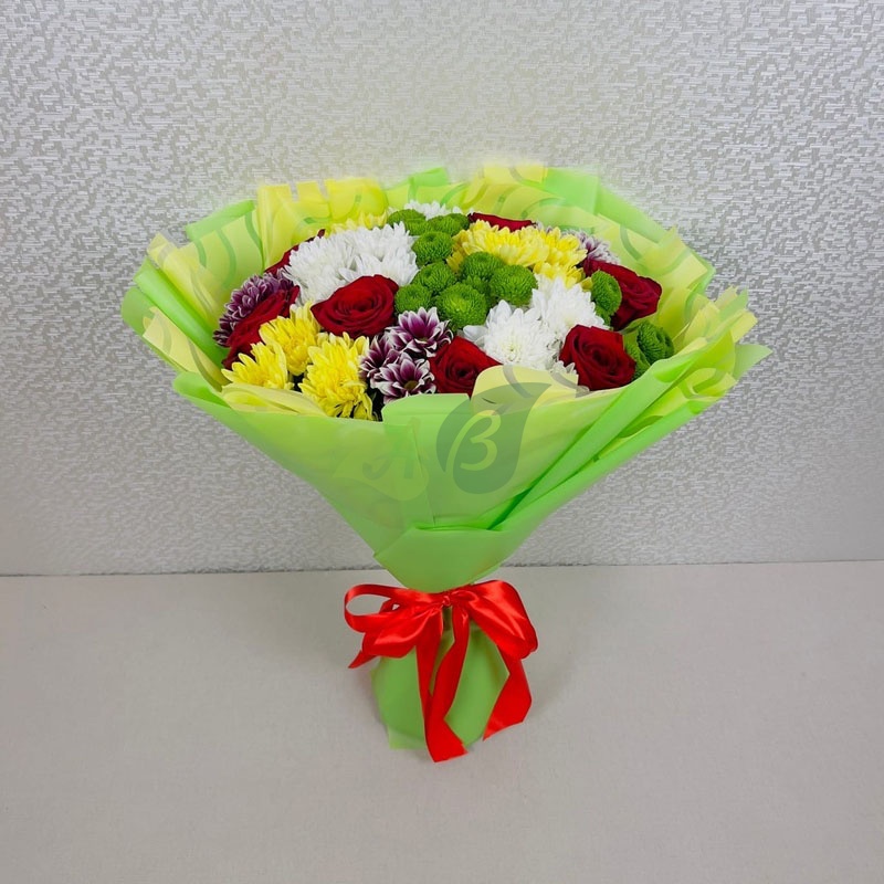 “Девичьи грезы” – это сборный букет из 7 алых роз и кустовых хризантем. Это яркая, необычная композиция, которую вы можете заказать с доставкой в любую точку Абакана.
